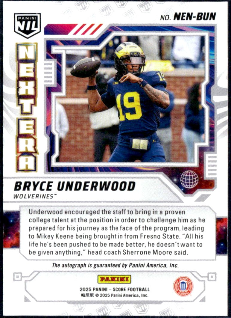 Bryce Underwood RC 2025 Panini Score NIL Next Era Rookie Auto