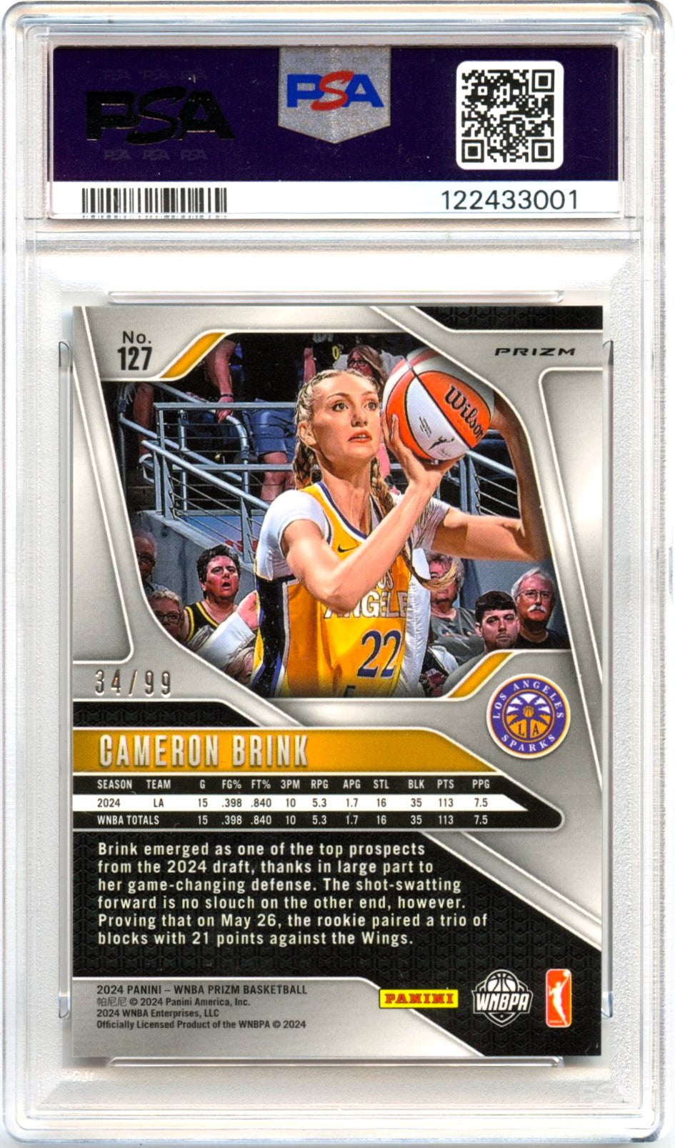Cameron Brink RC 2024 Panini Prizm WNBA Orange Rookie SP 34/99 PSA 10