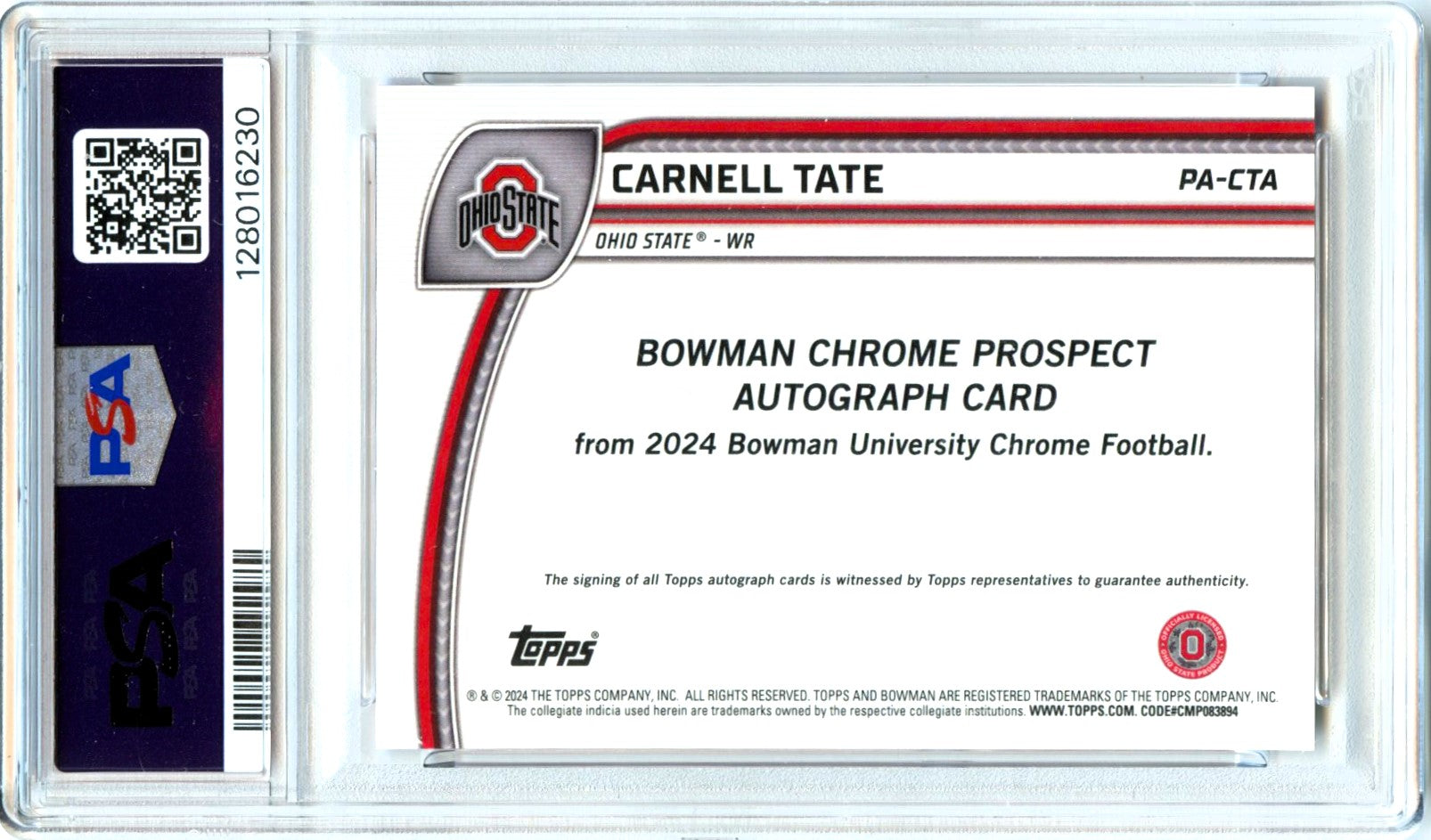 Carnell Tate RC 2024 Bowman University Chrome Fuchsia Rookie Auto SP 4/150 PSA 9