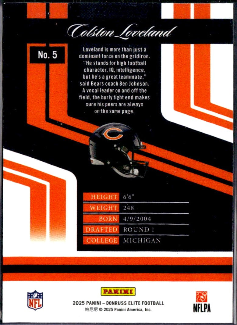 Colston Loveland RC 2025 Panini Donruss Elite Throwback Gold Rookie SP 3/10