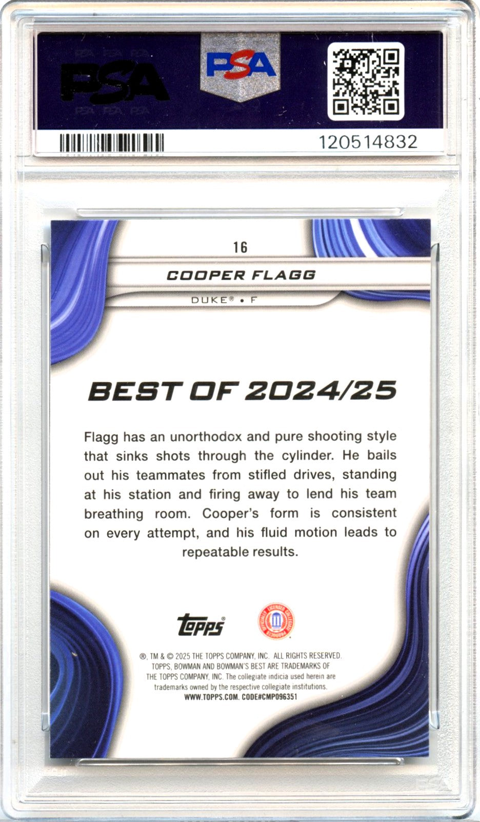 Cooper Flagg RC 2024-25 Bowman U Best Geometric Rookie #16 PSA 10