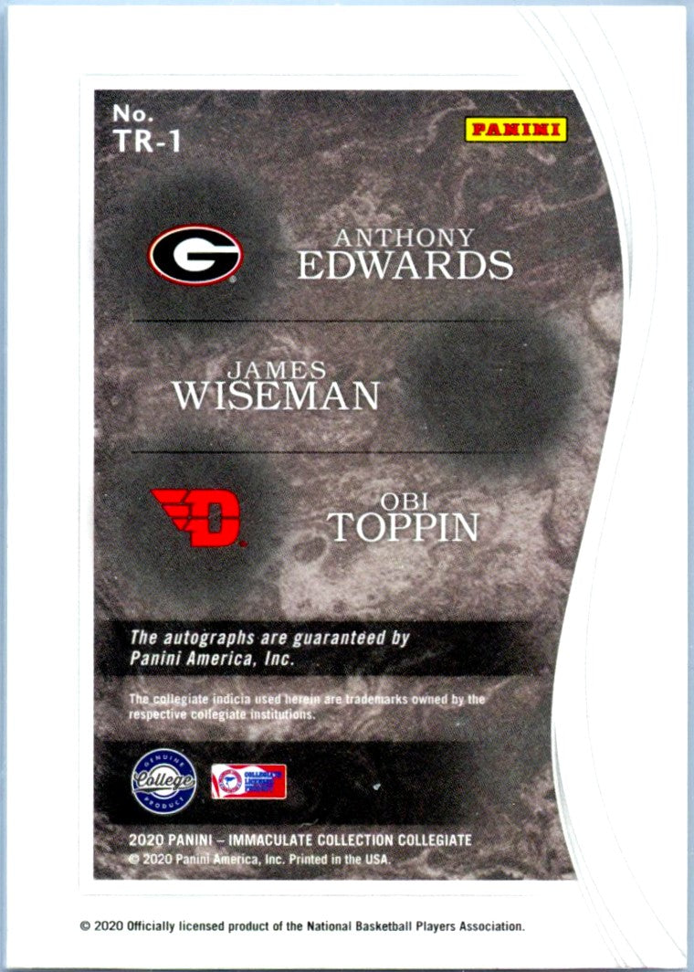 Edwards Wiseman Toppin 2020 Immaculate Collegiate Triple Rookie Auto SP 13/25
