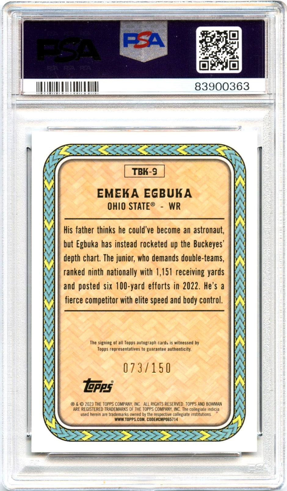 Emeka Egbuka RC 2023 Bowman University Chrome Big Kahuna Rookie Auto SP 73/150 PSA 9