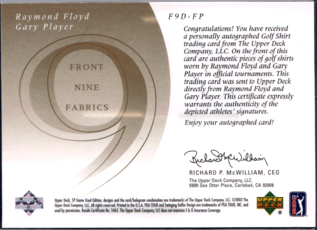 Gary Player Raymond Floyd 2021 UD Sp Game Used Golf Front 9 Dual Patch Auto SP 4/10