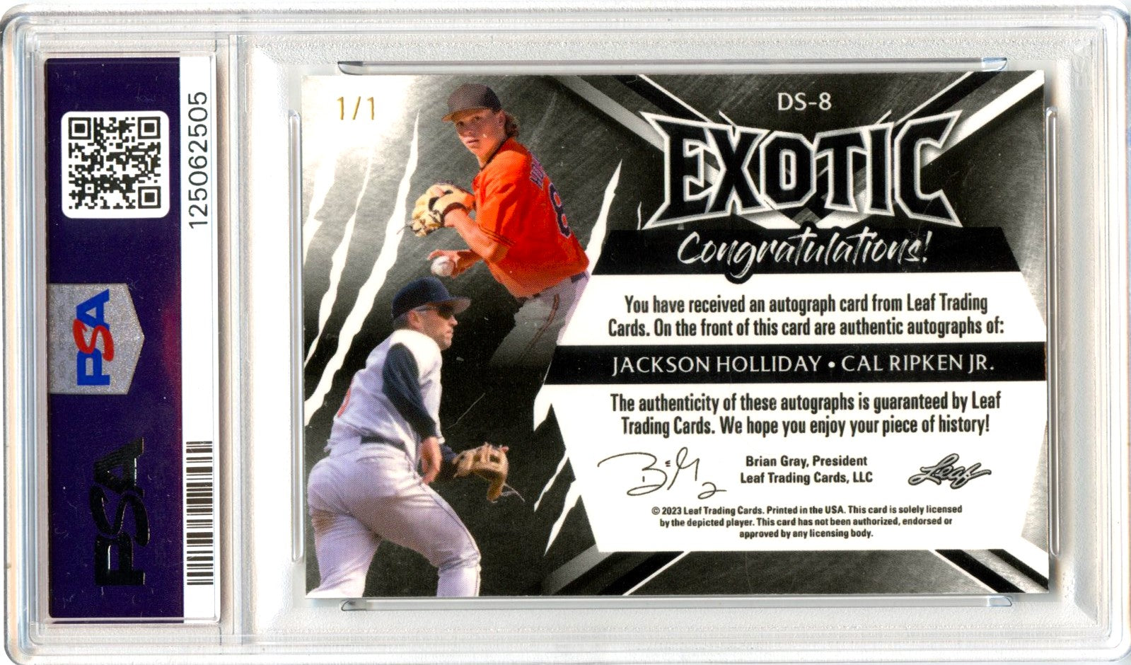 Jackson Holliday Cal Ripken Jr 2023 Leaf Exotic Dual Leopard Scope Auto Rookie SP 1/1 PSA 9