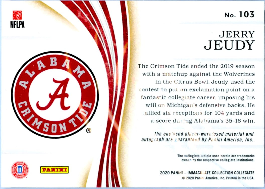 Jerry Jeudy RC 2020 Immaculate Collegiate Rookie Bowl Logo Patch Auto SP 1/10