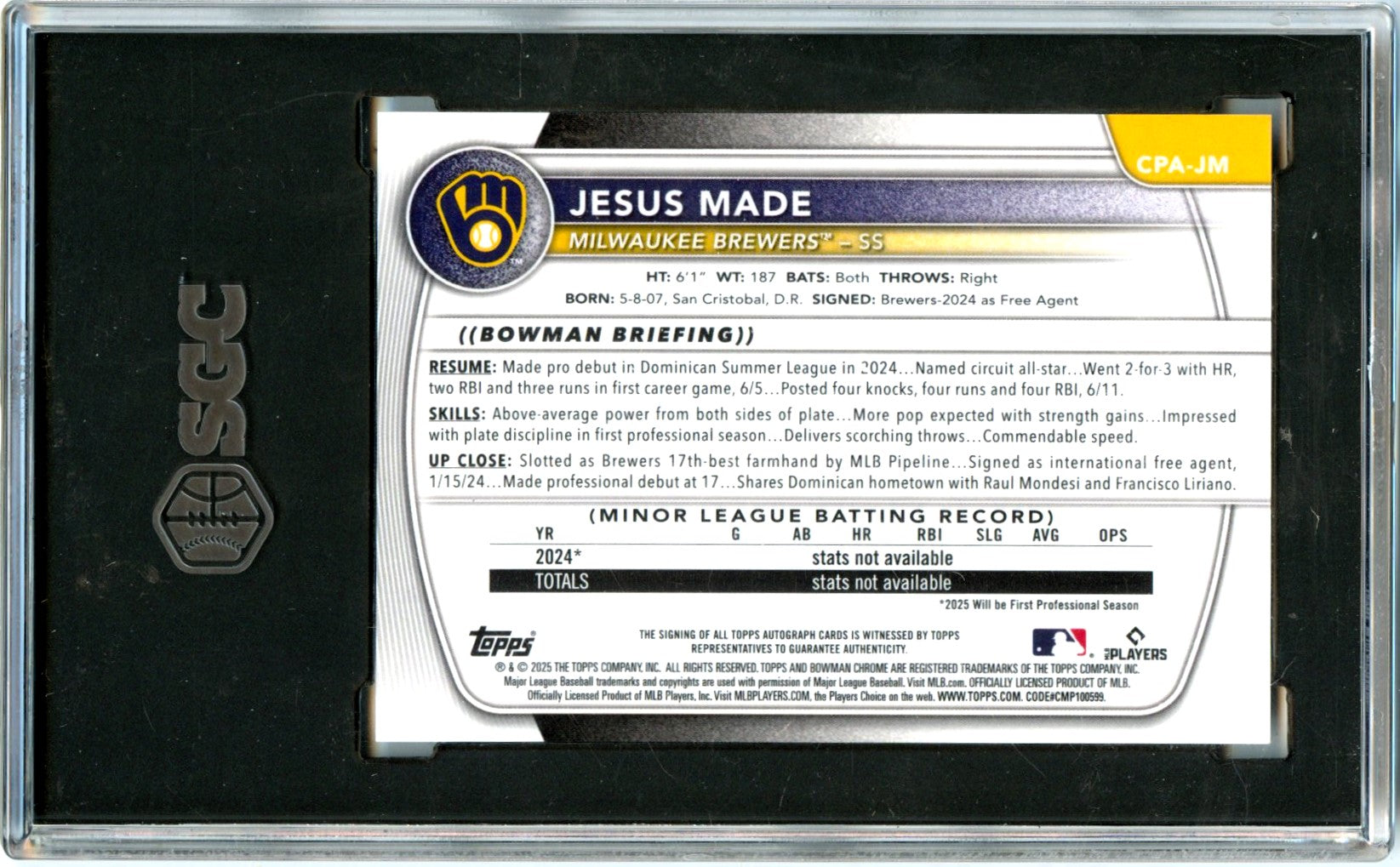 Jesus Made RC 2025 1st Bowman Chrome Prospect Rookie Auto SGC 10