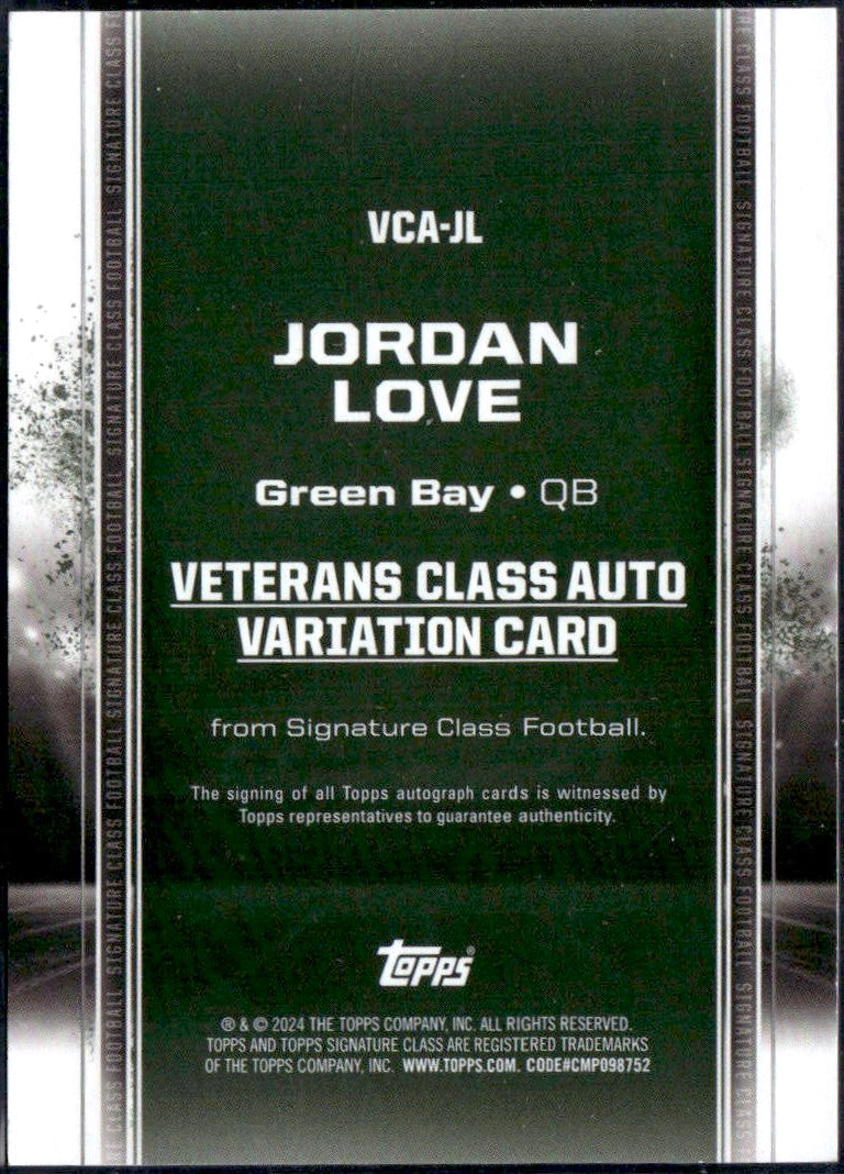 Jordan Love 2024 Topps Signature Class Orange Auto SP 25/25