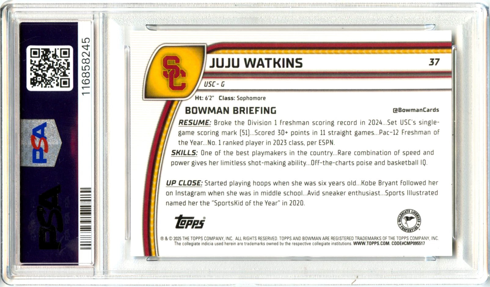 Juju Watkins RC 2024 Bowman U Chrome Orange Reptilian Rookie SP 15/25 PSA 10