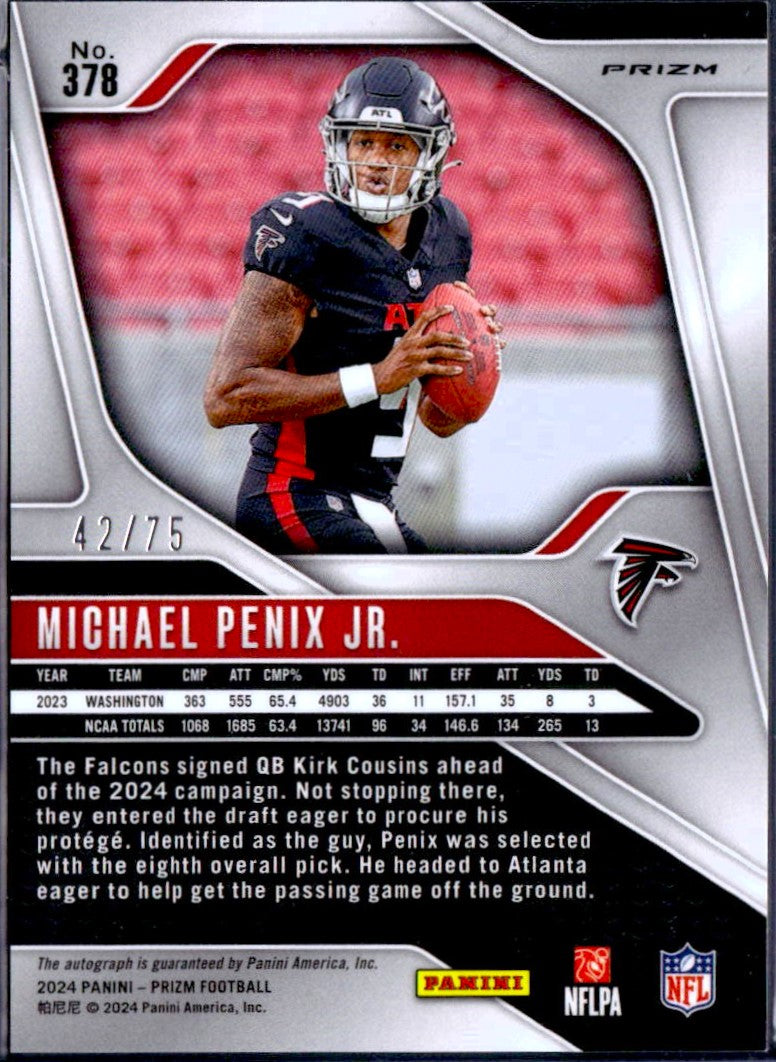 Michael Penix Jr RC 2024 Panini Prizm Green Scope Rookie Auto SP 42/75