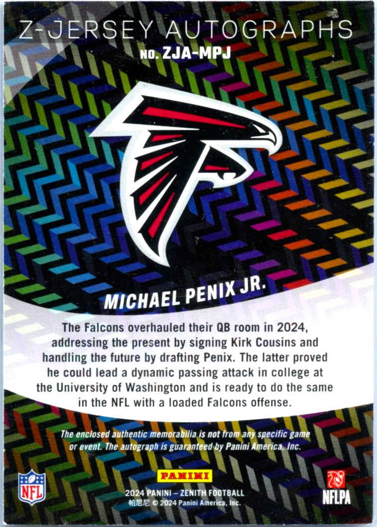 Michael Penix Jr RC 2024 Panini Zenith Blue Rookie Patch Auto SP 2/25