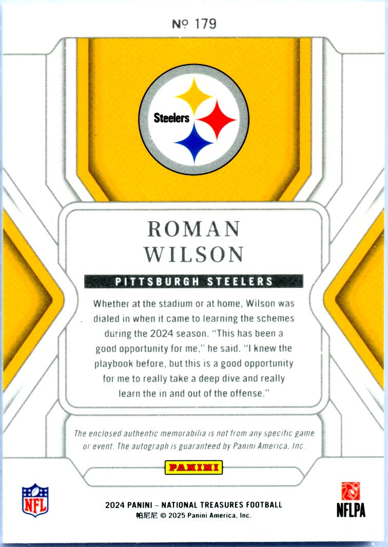 Roman Wilson RC 2024 National Treasures Green Rookie Patch Auto SP 9/10