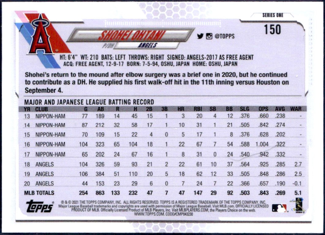 Shohei Ohtani 2021 Topps Series One SP Variation #150